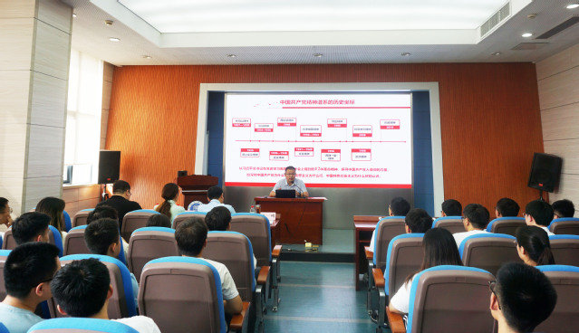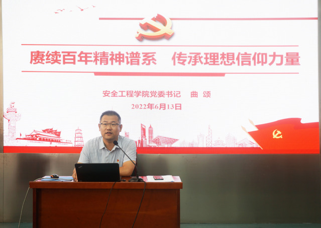 6月13日下午,院党委书记曲颂以“赓续百年精神谱系 传承理想信仰力量”为题,为百余名2022届毕业生党员讲授专题党课。学院党委副书记孙留涛、学院组织员周爽参加此次活动。活动由院学工办主任刘世通主持。