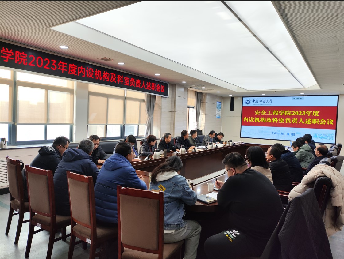 1月3日下午,安全学院在矿业科学中心A412会议室召开2023年度内设机构及科室负责人述职会议。学院岗位设置与聘任工作领导小组成员,各内设机构、科研平台、机关科室、实验中心负责人参加了会议。会议由副院长郭梅香主持。