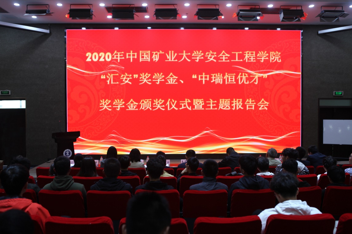 王恩元院长在讲话中首先对深圳汇安消防设施工程有限公司、深圳市中瑞恒管理策划有限公司支持学院的人才培养工作并设立奖学金表示衷心的感谢;其次希望广大同学以获奖同学为榜样,勤奋学习、提升能力、追求卓越、超越自我,早日成为能够引领科技创新和行业发展的优秀人才;最后希望安全学院与深圳汇安消防设施工程有限公司和深圳市中瑞恒管理策划有限公司在科研项目、实践教学和人才培养等环节加强交流,深化合作。