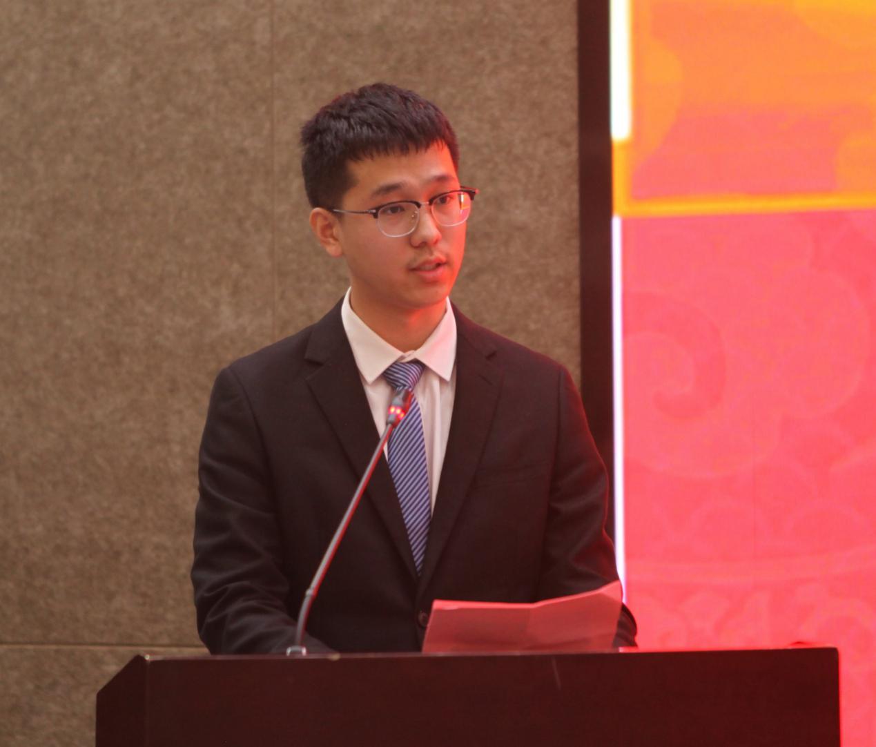 “中瑞恒优才”奖学金获奖学生代表田辰浩发言