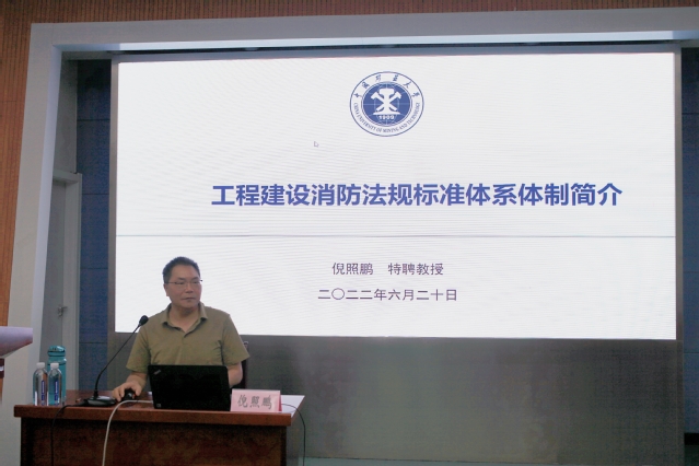 聘任仪式过后,倪照鹏教授作了“工程建设消防法规标准体系体制简介”的学术报告。倪教授介绍了世界各主要国家工程建设消防法规标准体系的发展情况,着重分析了我国工程建设消防法规标准体系的设立情况,强调了设立相关标准体系的重要意义,并结合实例讲解了日常消防规范条文执行尺度等常见的问题。学术报告结束后,倪教授与与现场师生开展互动,积极回答师生提出的相关学术问题。