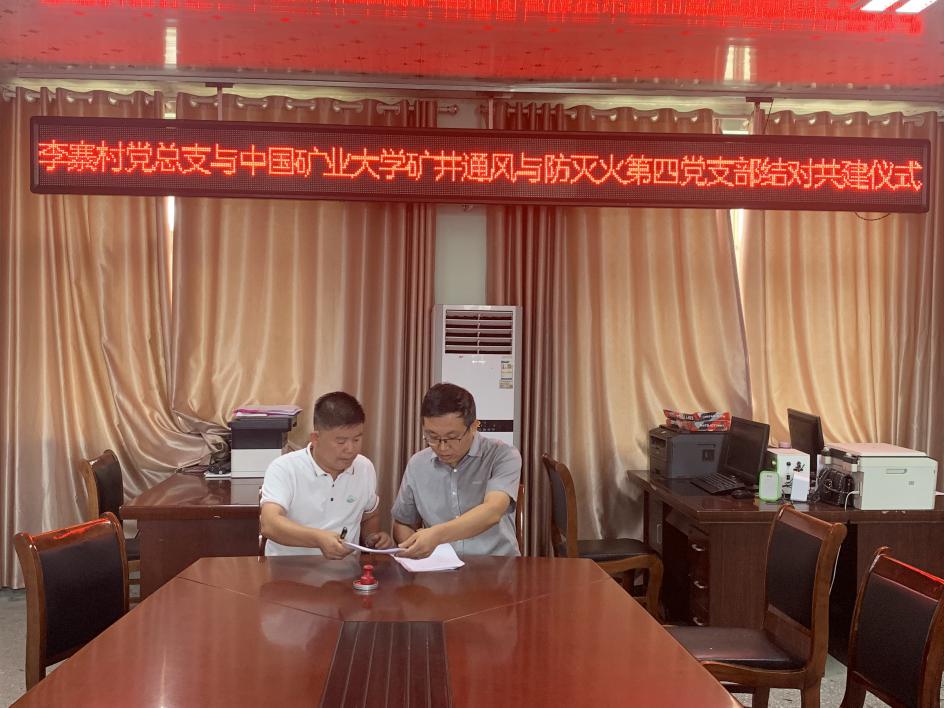 李寨村党支部书记石少华向与会同志介绍了李寨村近几年的发展情况及李寨村脱贫攻坚面临的主要问题。孙留涛副书记介绍了安全工程学院和矿井通风防灭火研究所的基本情况,充分发挥高校在制度建设、党员教育、智力扶贫、文化下乡等方面的优势为李寨村的发展提供智力支持,抓党建促发展。矿井通风与防灭火第四党支部书记康建宏就支部共建协议的具体内容进行了沟通。会上,安全学院矿井通风与防灭火第四党支部与李寨村党支部签署共建协议,随后走访了李寨村明德小学。