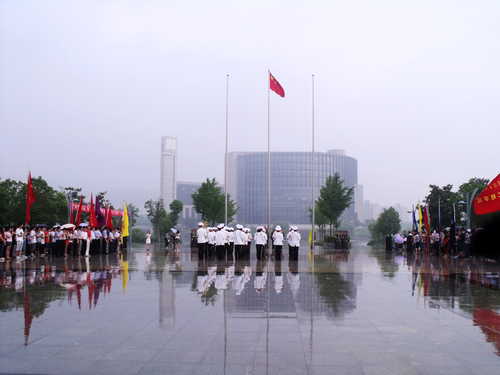 “与党同心 与党同行——纪念建党九十二周年”升旗仪式在南湖校区东门国旗广场举行。校党委副书记曹德欣等校院领导出席了仪式。海角社区