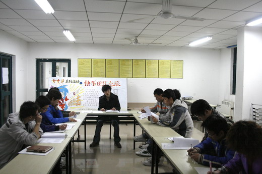 4月16日晚,海角社区 08级团总支在梅三5楼活动室召开第一次委员会议,08级各团支部书记、组织委员、宣传委员参加会议。会议由08级团总支书记石恺主持。
