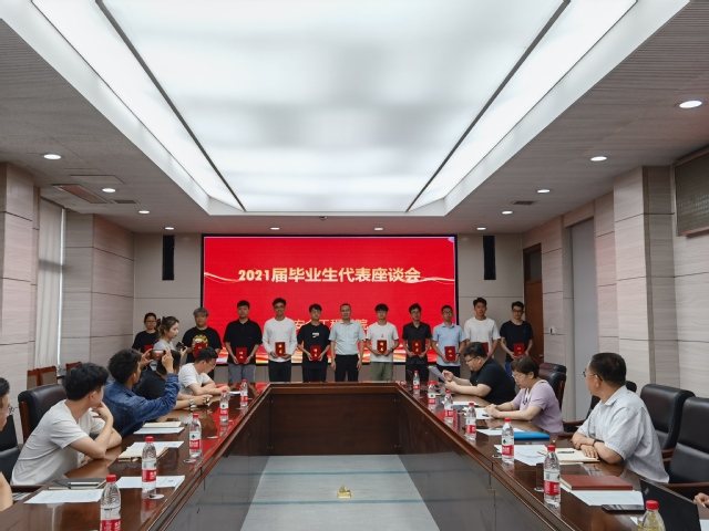 首先举行了校友联络员聘任仪式,院党委书记王思华为2021届校友联络员颁发聘书。其次,毕业生代表畅谈自己对大学生涯的思考和感悟,表达自己对学院的热爱之心、感激之意和不舍之情,并围绕人才培养、教育教学、教育管理、校园文化活动等方面,为学院的发展进言献策。