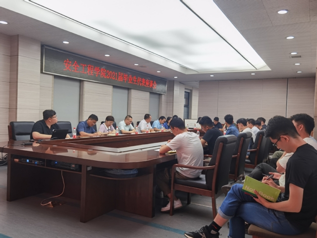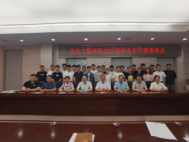 6月16日上午,安全学院在矿业科学中心A412举行2021届毕业生代表座谈会。院党委书记王思华,院长王恩元,院党委副书记孙留涛,行政副院长郭梅香,副院长王亮,副院长仲晓星,17级6班行政班主任程婷婷出席活动,17级23名毕业生代表参加座谈会。座谈会由学工办主任、团委书记刘世通主持。