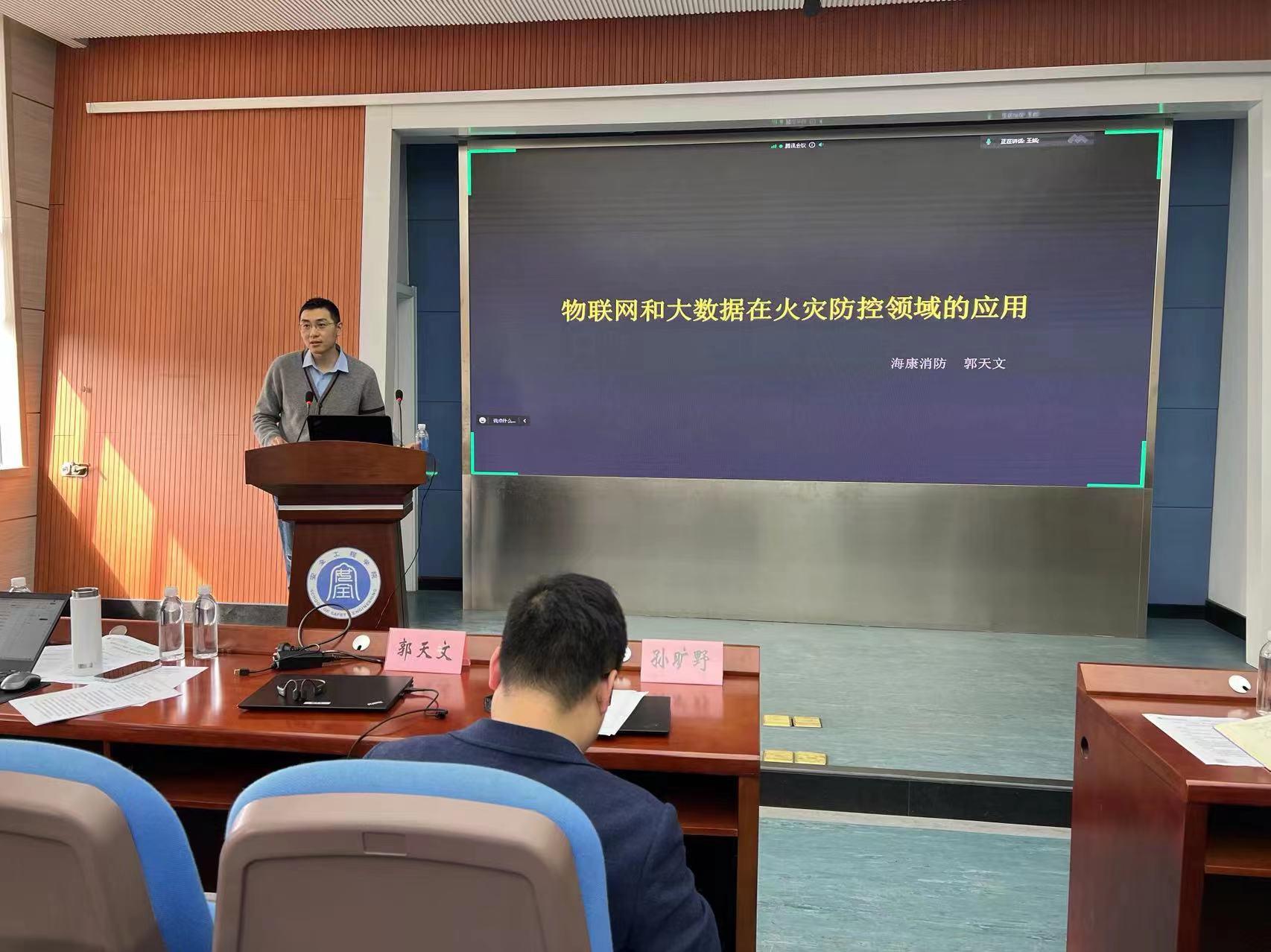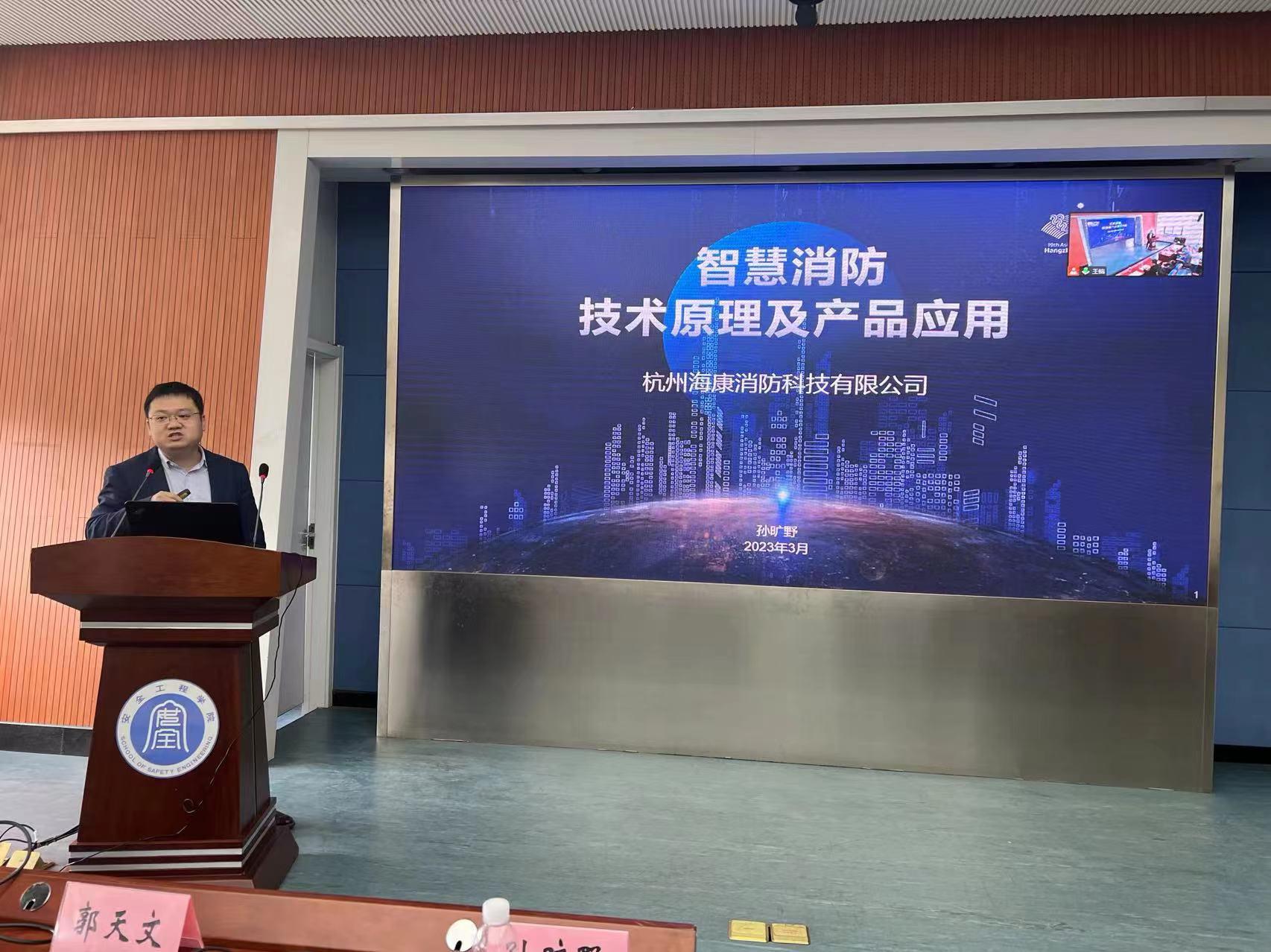 开班仪式过后,杭州海康消防科技有限公司副总裁孙旷野和郭天文分别作了《智慧消防技术原理及产品应用》和《物联网、大数据理论技术在火灾防控领域的探索应用》的学术报告。学术报告结束后,孙旷野副总和郭天文副总与现场师生开展互动,积极回答师生提出的相关学术问题。