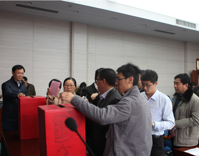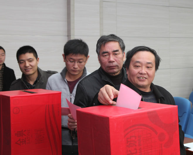 下午2∶30会议正式开始。院工会主席张人伟代表上一届工会报告工作。工会委员吴征艳对上一届工会会费收支明细情况进行了汇报。随后,大会表决通过了《选举办法》和出席校第八届教代会、第十四届工代会代表候选人名单以及第二届院工会委员候选人名单,推举钱雄为总计监票人并主持选举,推举李庆钊、李晓伟为监票人,孙留涛、刘应科、宋大钊、李伟为计票人。出席会议的62名教职工进行了现场投票。经差额投票选举,7名当选第二届院工会委员的分别是(按姓氏笔画为序):王亮、刘晓斐、李忠辉、吴征艳、胡惠强、裴晓东、魏静;代表海角社区