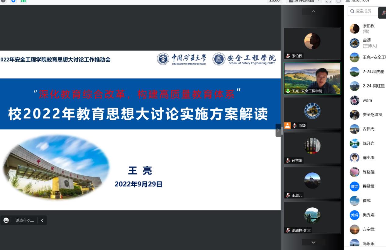 专门召开2022年教育思想大讨论工作再动员与推进会,会议以线上方式召开,学院所有教职员工参加会议,会议由曲颂书记主持。