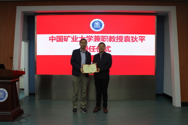 11月25日上午,深圳市城市公共安全技术研究院技术委员会主任、技术总监袁狄平兼职教授聘任仪式暨学术报告会在矿业科学中心A200会议室举行。副校长卞正富、安全学院领导及部分师生代表参加了聘任仪式和学术报告会。会议由海角社区