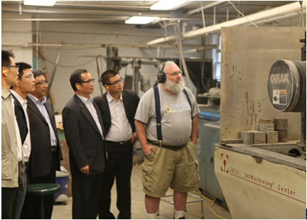 在密苏里科技大学访问期间,访问团和该校矿业工程系主任Samuel Frimpong教授、Jerry Tien教授、Maocheng Ge副教授、Stewart Gillies副教授、Brenda Pharithi博士等研究人员就煤炭开采过程中的动力学灾害及其控制、煤火防治、矿井通风、粉尘防治、瓦斯爆炸进行了研讨交流,并参观了该校的实验矿井、爆炸实验室、通风实验室和力学实验室。双方商定在前期合作的基础上,今后在科研协作、教师互访、联合培养学生等方面进一步加强合作与交流,并确定秦波涛教授将尽快赴该校进行合作研究。