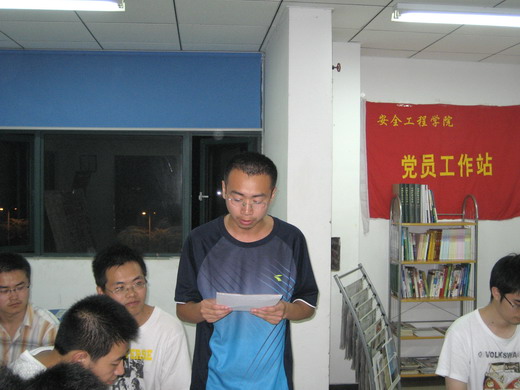 07级党支部书记金侃宣读大会决议并对大会进行总结,对支部大会讨论通过的14名同学表示祝贺。同时他也对大家提出了要求和期望,要求这批正式党员要向老党员学习,深入学习实践科学发展观,结合实际情况进一步加强对党的理论及自身思想道德建设,要时刻用党员的标准严格要求自己,在学习、工作等各个方面发挥好骨干带头作用,同时为保质保量完成党支部各项工作做出更大贡献。