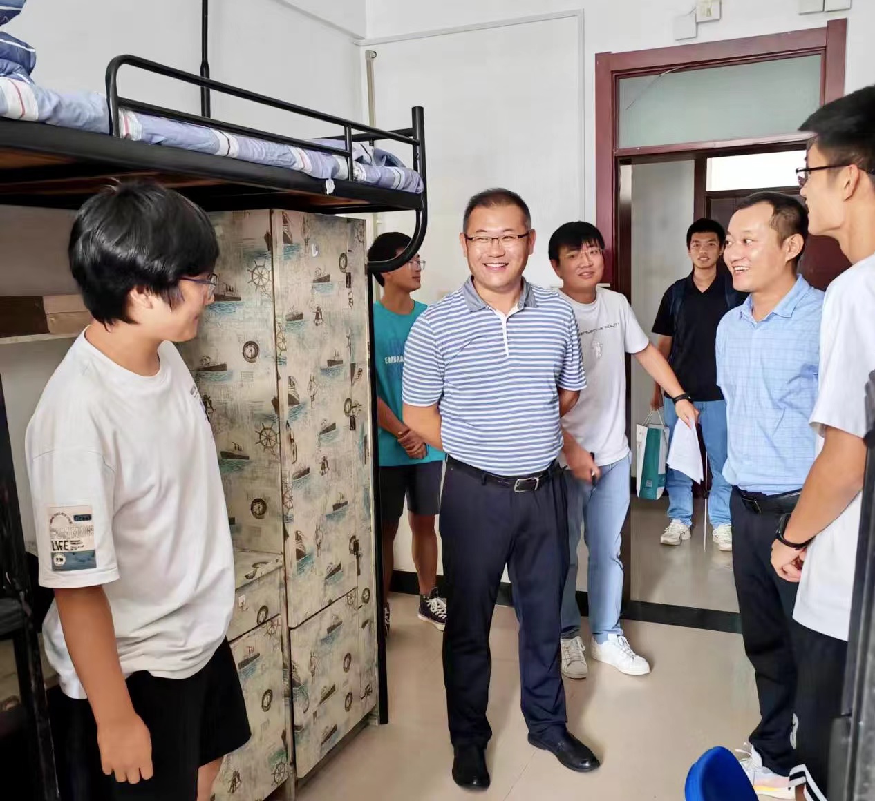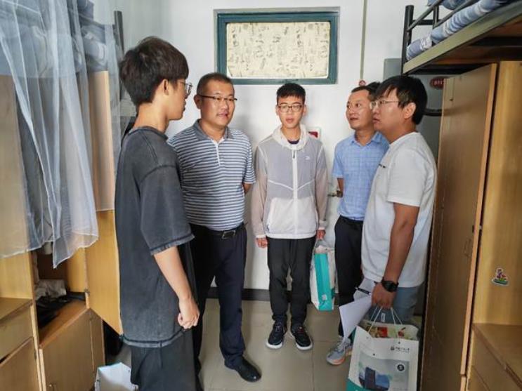 9月9日中午,在中秋佳节即将来临之际,院党委书记曲颂、党委副书记孙留涛及新生辅导员赵厚宽走访慰问了2022级新生宿舍,为大家送上节日祝福和中秋礼物。