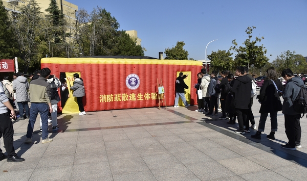 团委联合校保卫处在青春广场开展消防体验活动,此次活动以“落实消防责任,防范安全风险”为主题,吸引逾千名同学现场参与。校党委书记刘波、副校长赵建岭相继来到现场,参观体验活动项目,与同学们进行亲切交流。