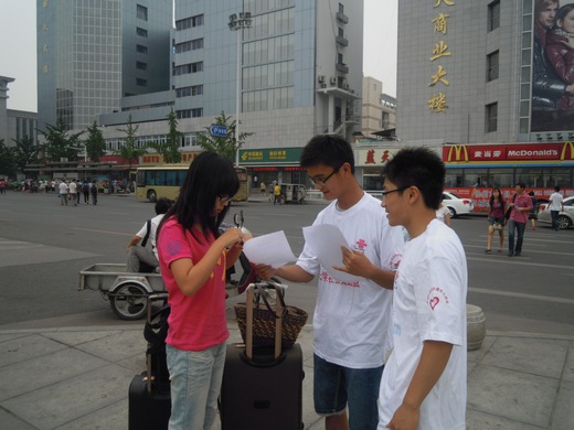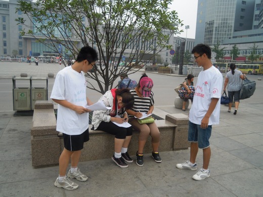 在本日的调研活动中,实践团队共分成三个调查小组,分别于徐州市火车站、徐州市中心地下商场,海角社区