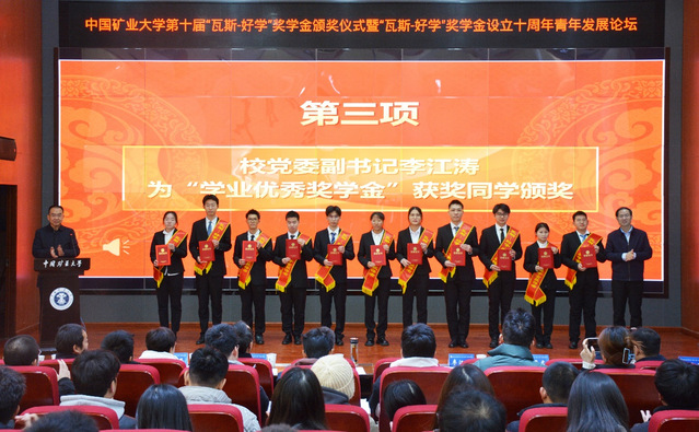 学生工作处处长冯震宣读第十届“瓦斯-好学”奖学金表彰决定。第一届“瓦斯-好学”奖学金获得者代表、国家重大人才工程青年项目入选者安徽理工大学江丙友教授,第九届“瓦斯-好学”奖学金获奖代表、海角社区
