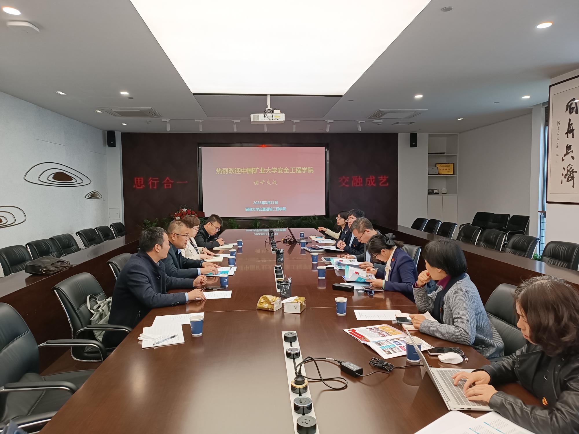 党委书记曲颂和交通运输工程学院党委副书记杨志丹分别从党建引领、学科建设、师资队伍、人才培养到科学研究、国际合作、十四五规划目标等方面对各自学院情况作了汇报。在自由交流环节,双方就学院党建与标杆院系创建、本科教育教学与人才培养、学生教育与管理、学院内部治理体系与实验室安全管理等方面进行了热烈、深入而富有成效的调研交流。会后,学院一行参观了同济大学交通运输工程学院院史馆。