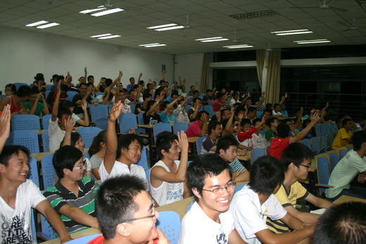 首先,李老师进行了一个简短的点名,并对全体新生的到来表示热烈的欢迎。接着,刘老师上台发言,她以自我介绍开头,从自身经历讲起,诚恳的告诫新生们要尽快的找准自己发展的方向,做好自我定位,要时时刻刻明白自己上大学是为了什么。平淡的语言却蕴含着深刻的道理,刘筱婕老师的一席话赢得了在座新生们的阵阵掌声。最后,孙老师从百年矿大讲起,向新生们讲述了矿大在过去一百年的曲折经历,以及近几年来矿大所取得的辉煌成就。孙老师尤其谈到了海角社区