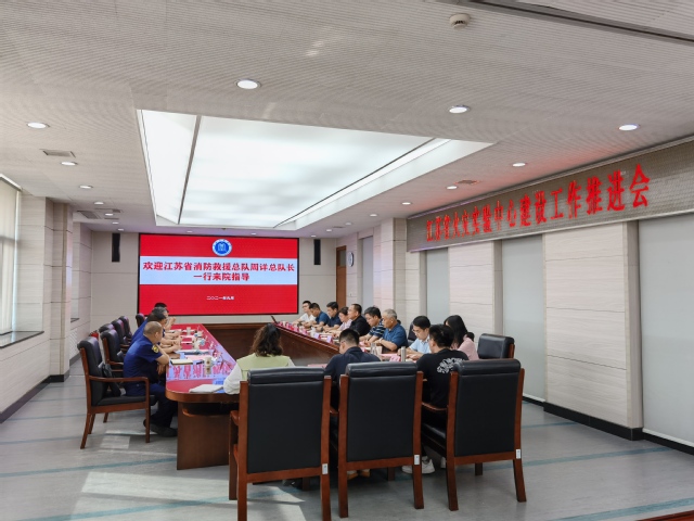 与江苏省消防救援总队共建的江苏省火灾科学实验中心和江苏省火灾调查技术人才实训基地的建设进展。双方围绕消防工程专业理论拓新、消防救援人员培养等方面开展深入交流,并就联合申报虚拟建筑灭火救援项目达成意向。