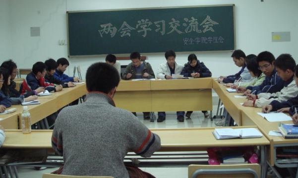 学生会主要干部在教四C303召开了两会学习交流会。学生会主席沈春明主持了此次会议。