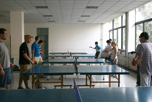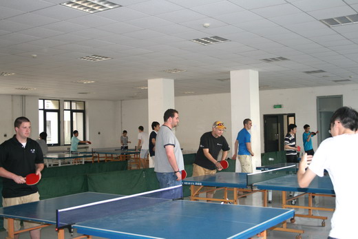 学生代表还同美国矿业工程专业交流生进行了乒乓球友谊赛,美国交流生虽然技术不是很娴熟,但是整个比赛过程中一直充满高涨的热情。
