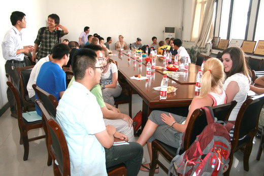 发展概况、专业设置及知名的教授、学者,而后,美国同学做了简单的自我介绍。在简单的仪式之后,座谈会正式开始,会上同学们谈论了如各自的大学生活、个人爱好等话题,并就自己不懂的问题向对方进行了咨询,整个会场气氛非常热烈。
