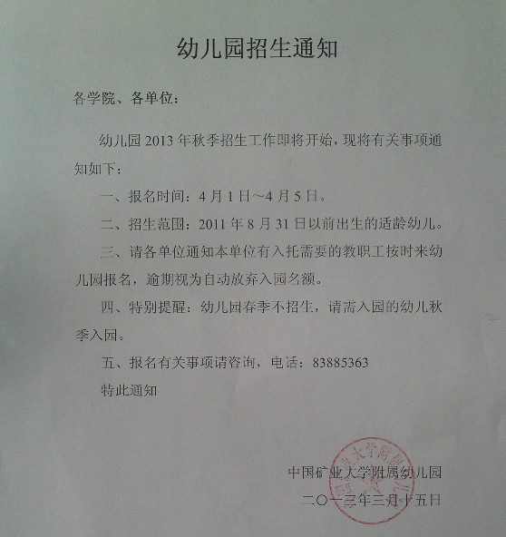 幼儿园招生通知