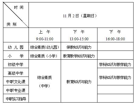 2014年下半年全国中小学教师资格考试笔试考试日期为11月2日,考试方式为纸笔考试。具体日程如下: