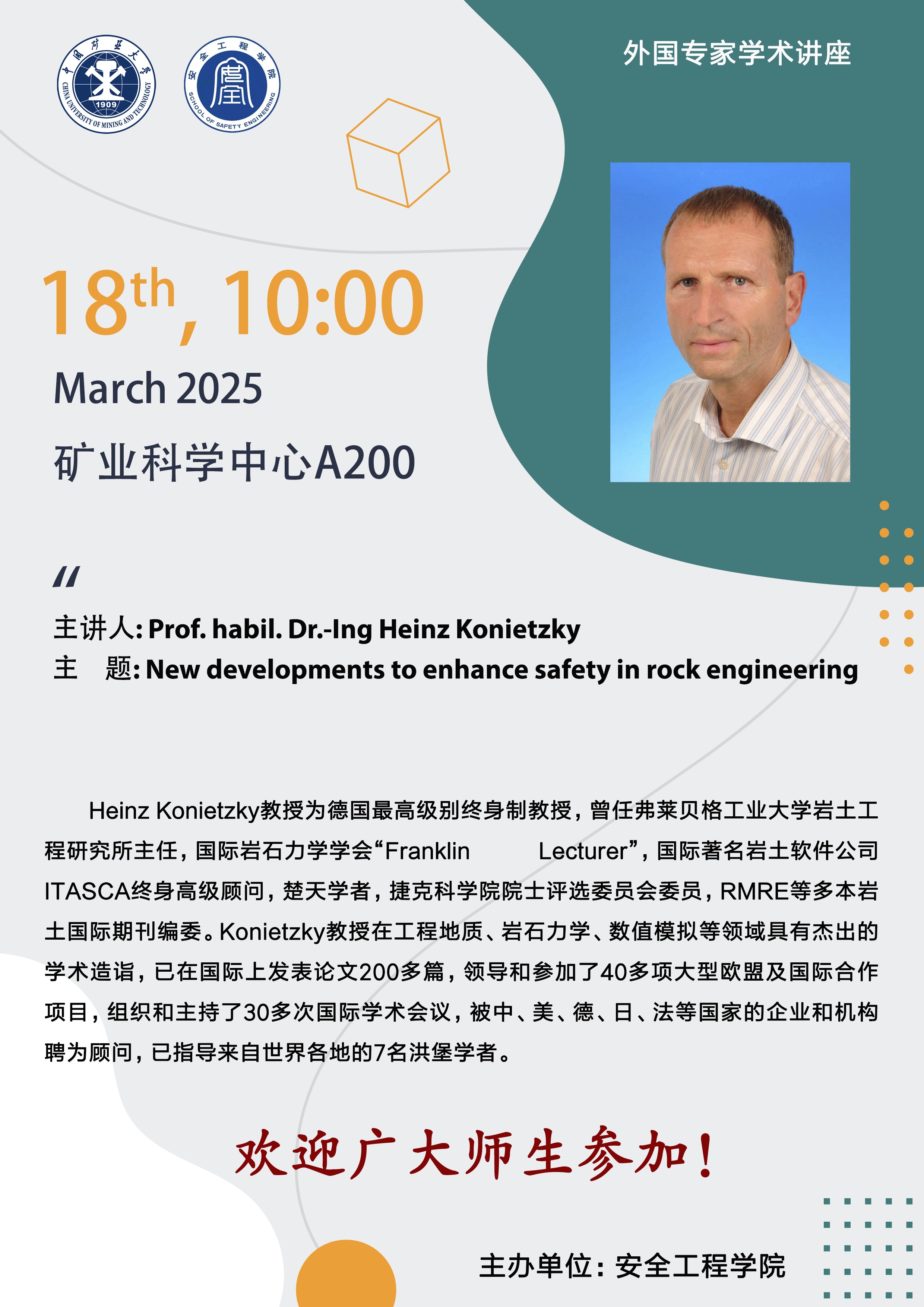 学术报告-New developments to enhance safety in rock engineering