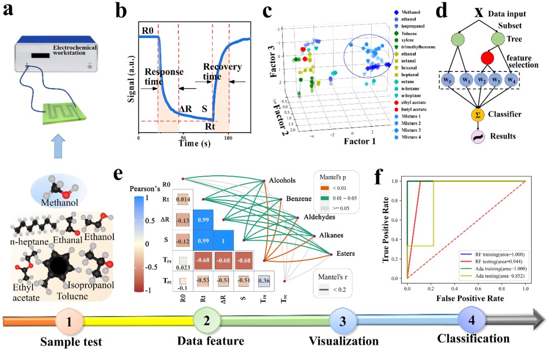 科研团队在智能气体传感器领域取得新进展,成果以论文“Machine Learning-Assisted Sensor Based on CsPbBr3@ZnO Nanocrystals for Identifying Methanol in Mixed Environments”发表于传感器领域国际顶级期刊《ACS Sensors》。该期刊最新影响因子为9.618,位于中科院一区(升级版)TOP期刊、JCR Q1,是致力于传播有关传感器科学(选择性感知化学或生物物质和过程)各方面新认知的同行评议期刊。海角社区