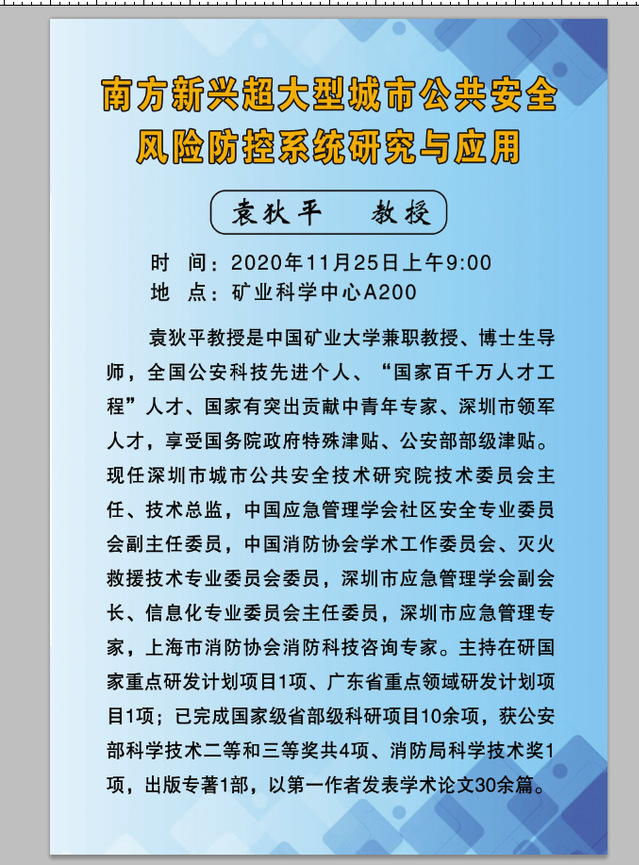 学术报告-南方新兴超大型城市公共安全风险防控系统研究与应用