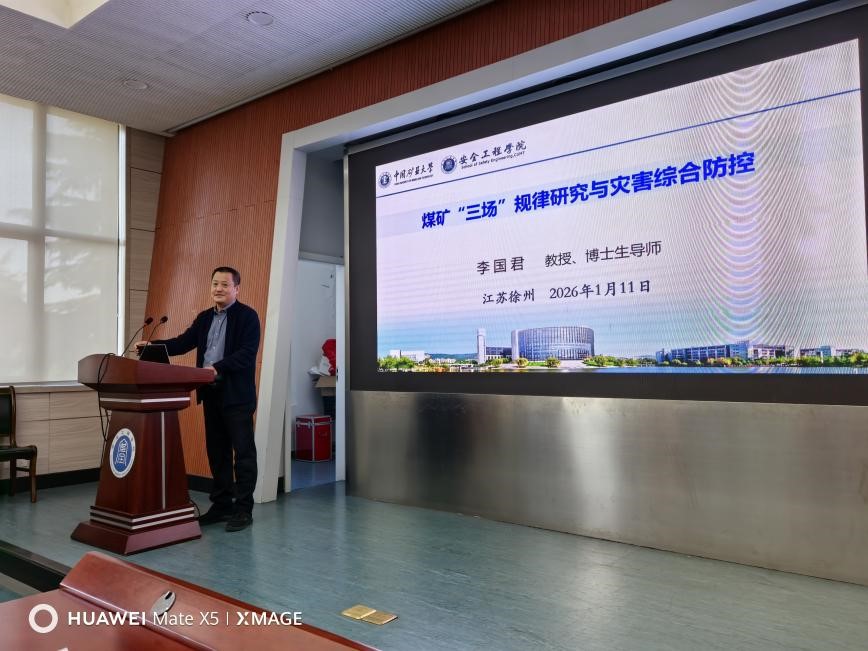 报告厅内气氛庄重而热烈。学院特聘教授、我国煤矿安全与煤层气开发领域著名专家李国君,为全院师生带来了一场题为“煤矿‘三场’规律研究与灾害综合防控”的专题报告。此次报告不仅是学术盛宴,更是一次精神的回归与传承。