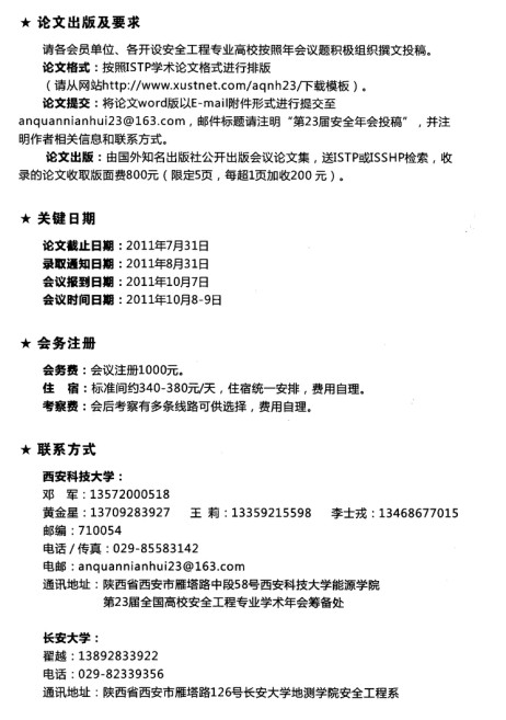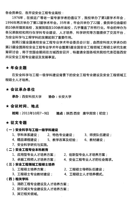 第23届全国高校安全工程专业学术年会暨第5届全国安全工程领域工程硕士研究生教育研讨会