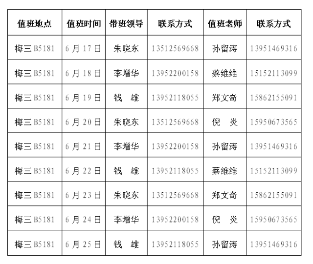 2015届毕业生即将毕业离校,为及时发现和妥善处置毕业生离校期间可能发生的各类突发事件,确保毕业生顺利文明离校,按照学校要求,学生区值班安排如下: